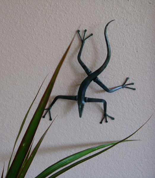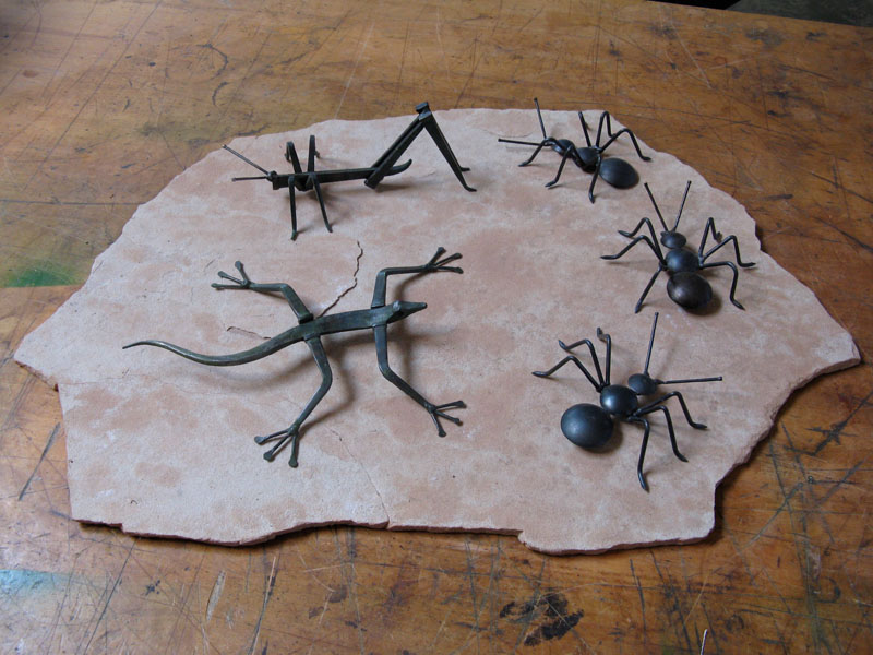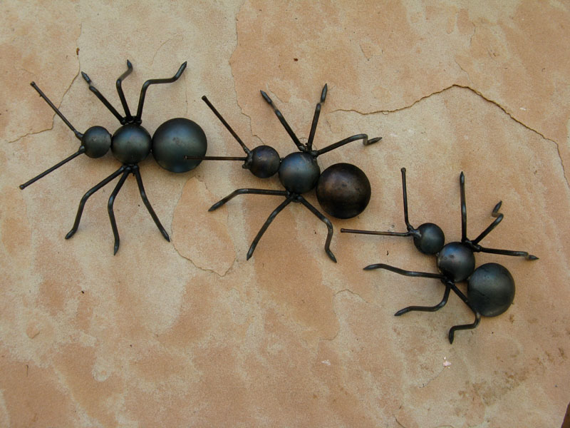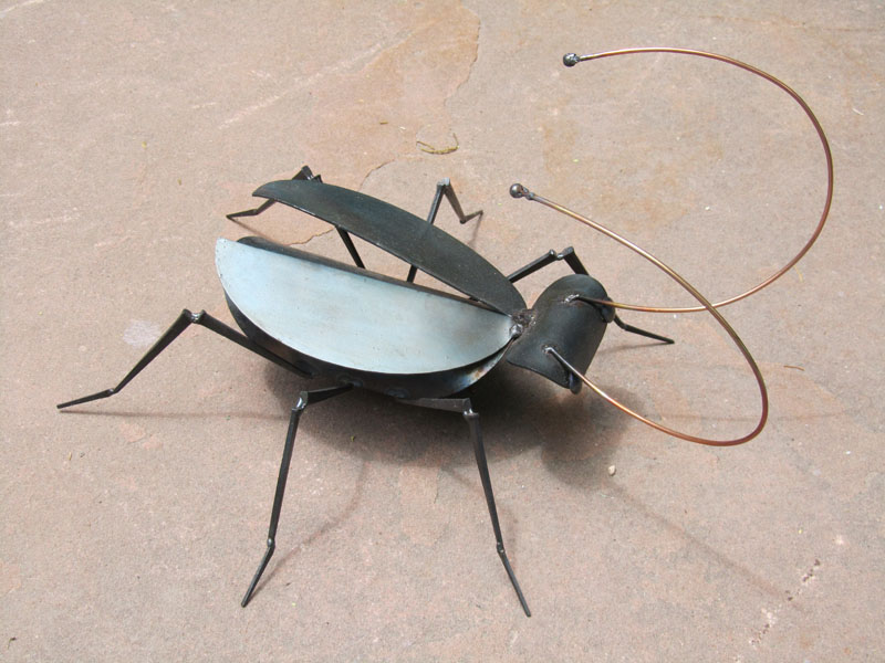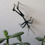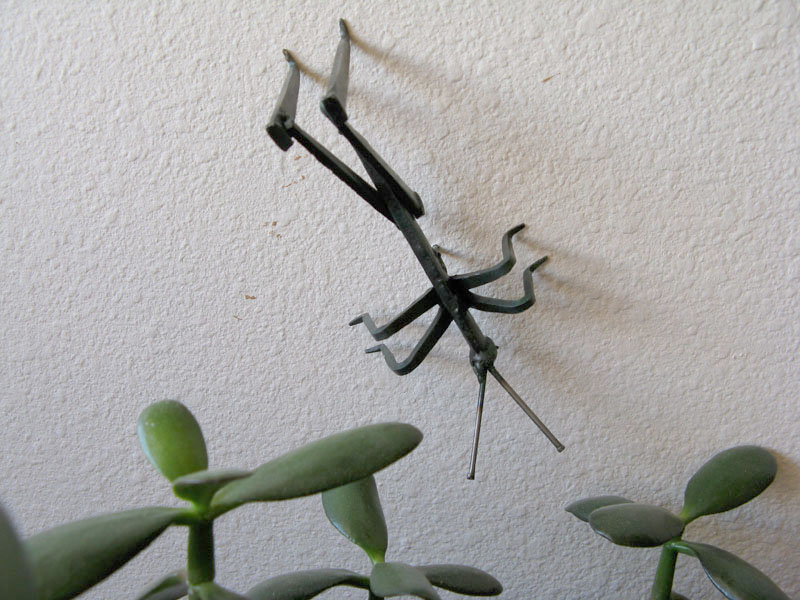 Made with nails, wire and scrap steel each Bugz is handcrafted, welded and finished with a coat wax. These friendly creatures feel right at home near indoor plants and even in the kitchen! Bugz with prong can easily be driven in drywall and stay right where you put them. They may even keep the real bugs away!